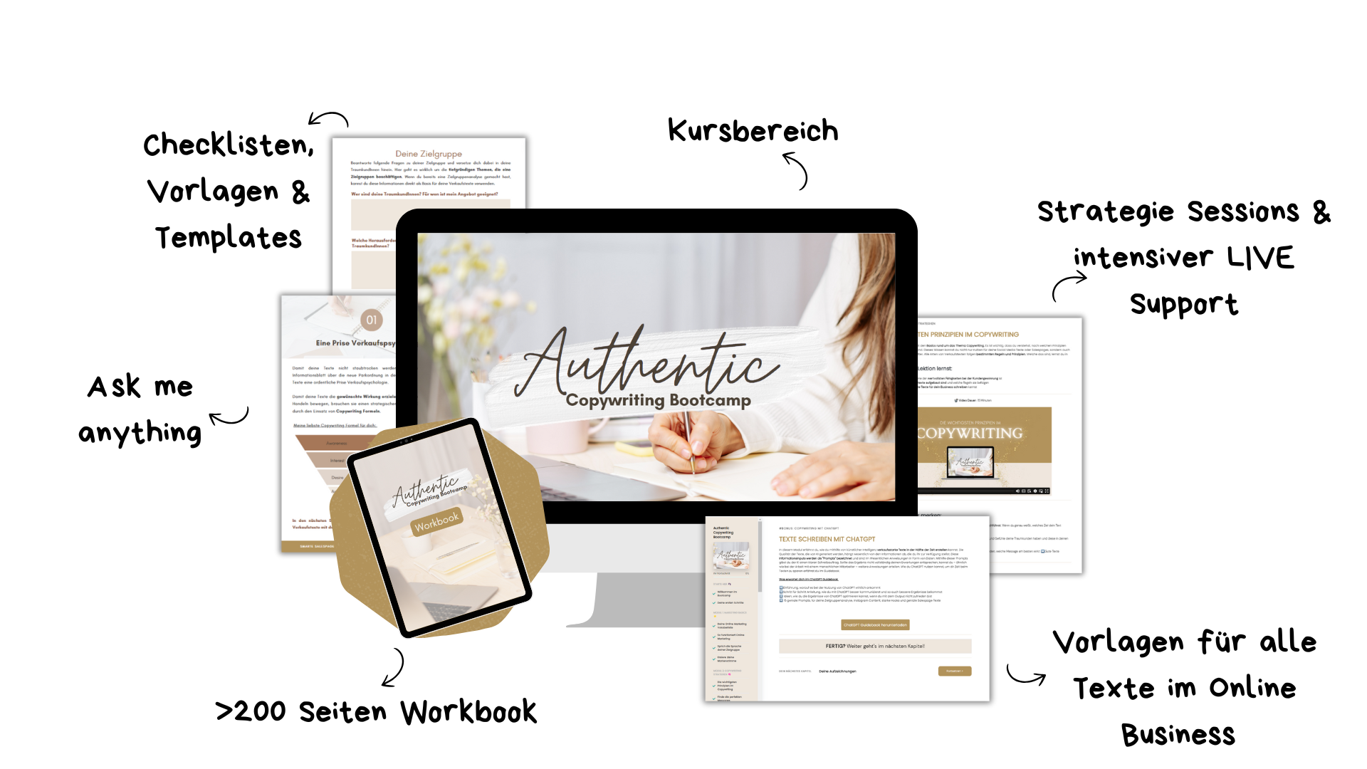 Das Authentic Copywriting Bootcamp ist dein All-Inkulsive für effektive, authentische und verkaufsstarke Texte, die nachhaltig Kunden gewinnen - ohne ständigen Verkaufsdruck.