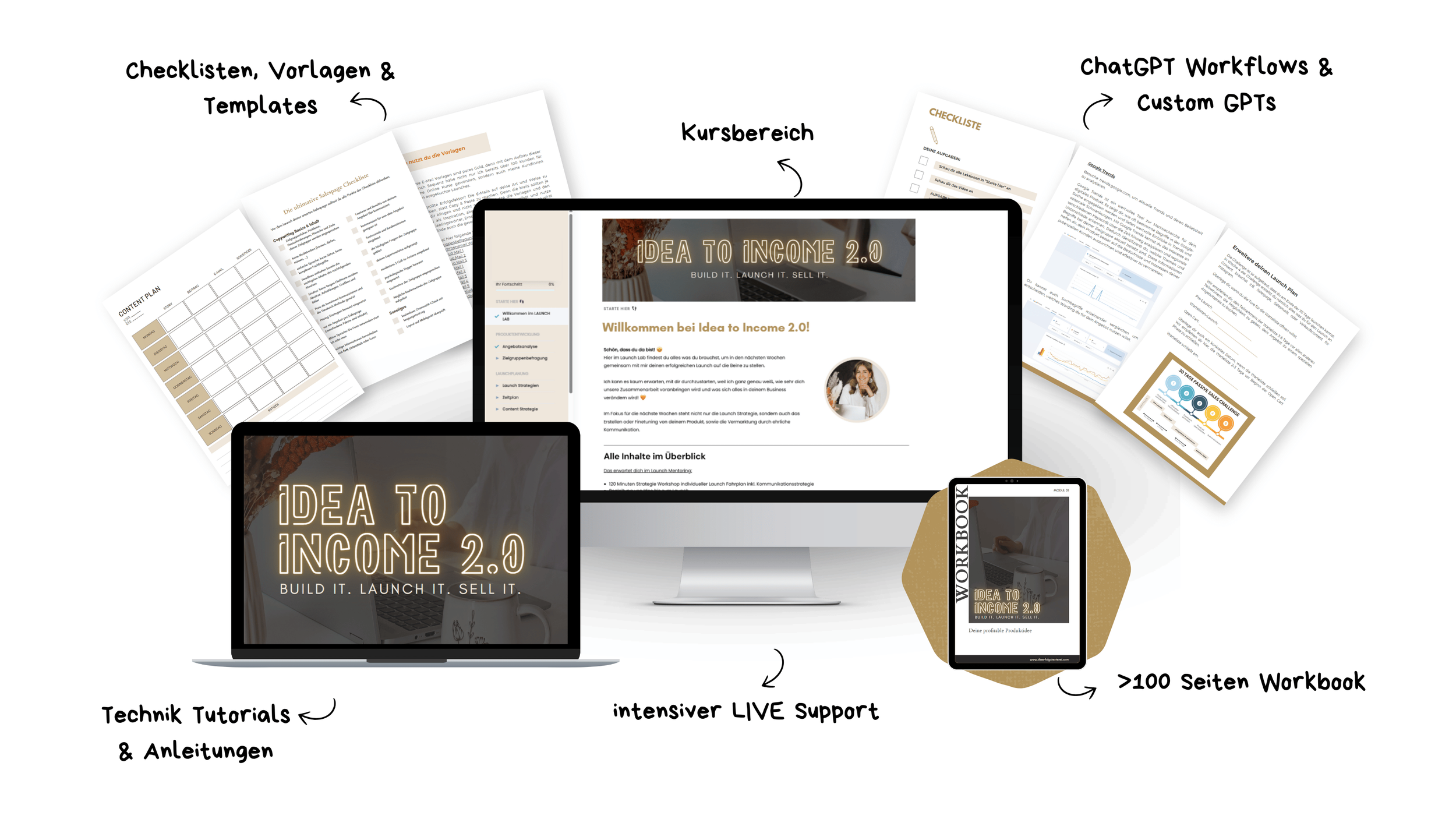 Idea to Income zeigt dir nicht nur, was du verkaufen kannst, sondern wie du dein perfektes digitales Produkt entwickelst, launchst und erfolgreich verkaufst.